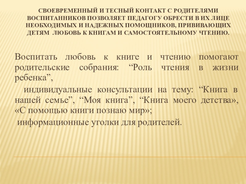 их лице необходимых и надежных помощников, прививающих детям любовь к книгам и самостоятельному чтению.
