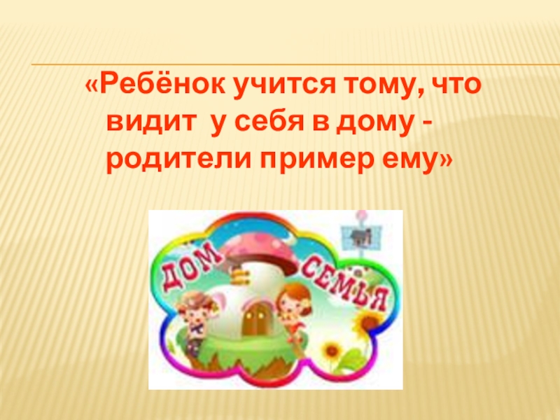 Слайд 13«Ребёнок учится тому, что видит у себя в дому - родители