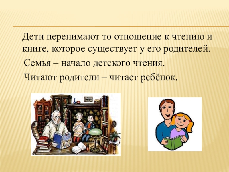 Слайд 14 Дети перенимают то отношение к чтению и книге, которое