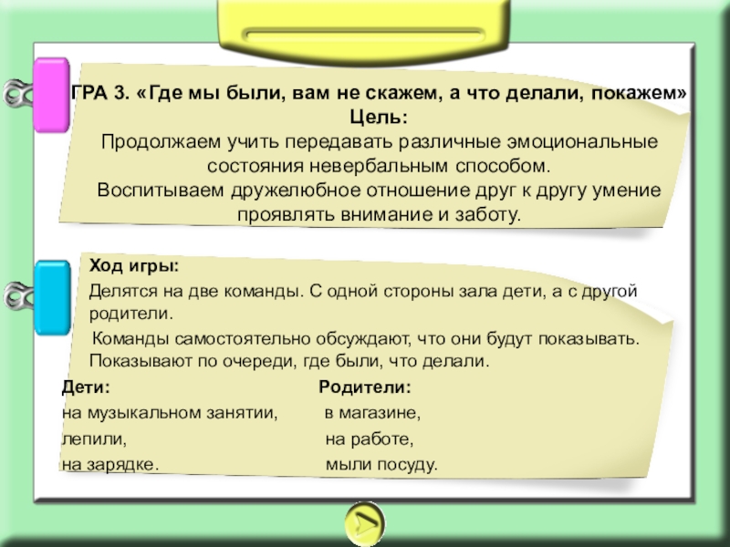 ИГРА 2. «Отгадай и покажи» (игра - драматизация)