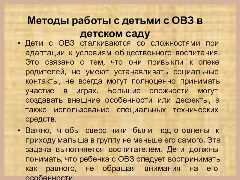 Когда в ДОУ поступают дети с ограниченными возможностями здоровья, они должны пройти обследование у специалистов, которые предоставляют необходимые данные воспитателю.»