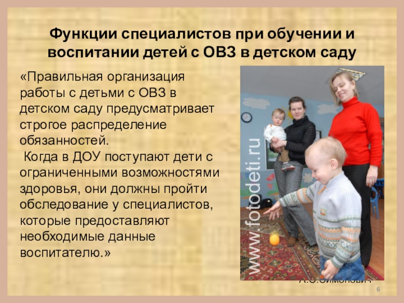 «Правильная организация работы с детьми с ОВЗ в детском саду предусматривает строгое распределение обязанностей.
