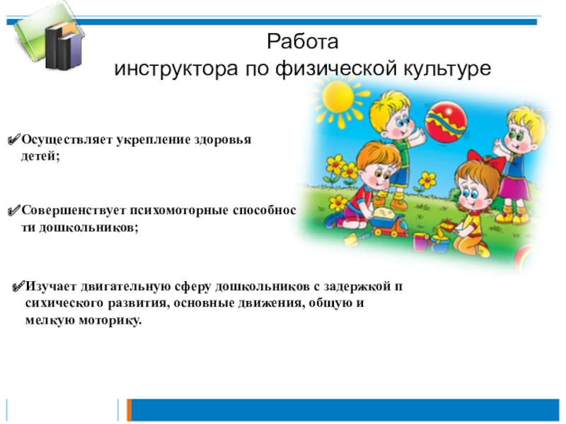 Воспитание культурно-гигиенических навыков, развитие мелкой моторики рук через ручной труд, лепку, конструирование; развитие общей моторики через подвижные игры и игровые упражнения;