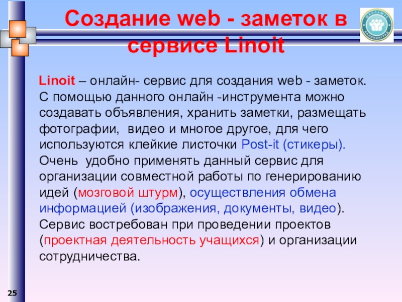 Слайд 25Cоздание web - заметок в сервисе Linoit