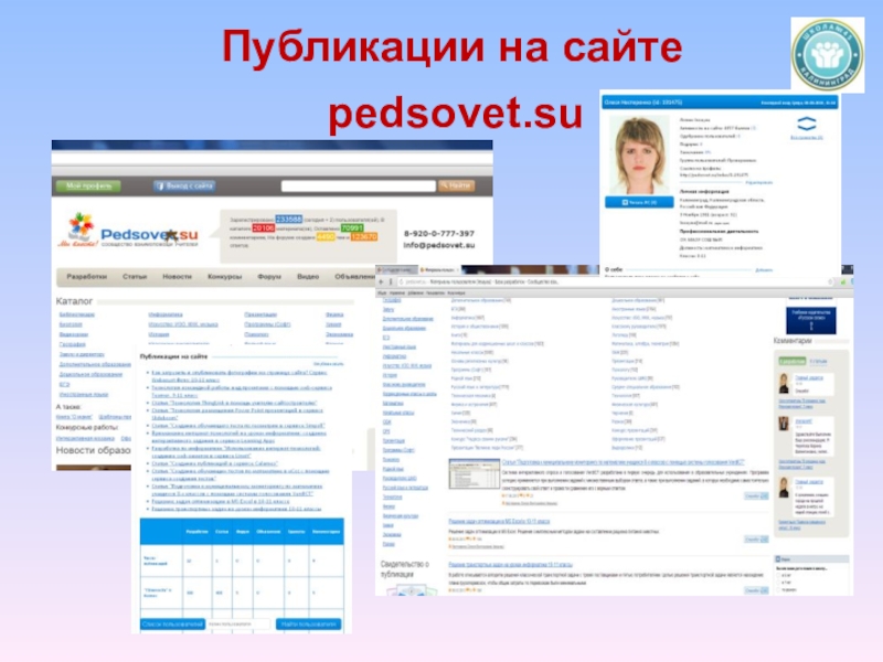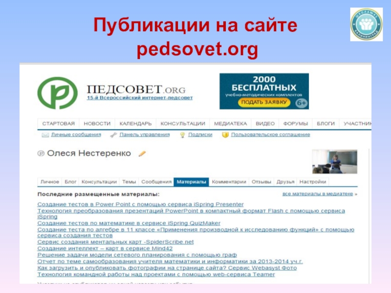 делиться своими публикациями, читать и обсуждать интересные презентации и публикации, размещенные на страницах ресурса.