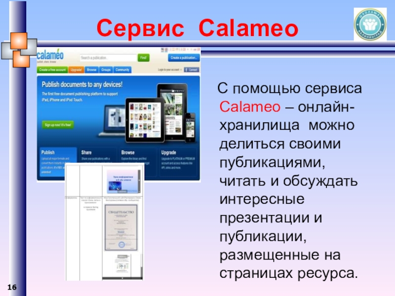 С помощью сервиса Calameo – онлайн- хранилища можно