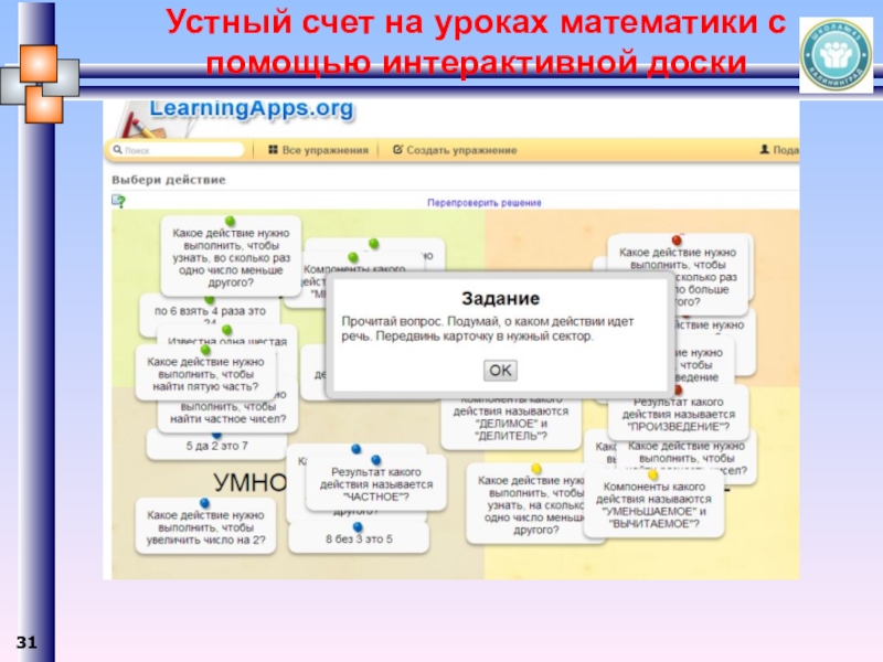 Слайд 31Устный счет на уроках математики с помощью интерактивной доски