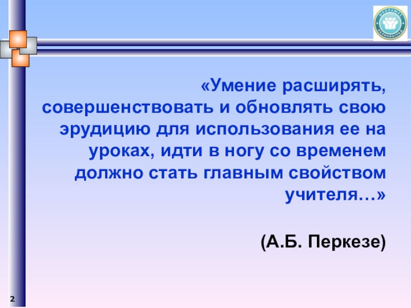 Слайд 2«Умение расширять, совершенствовать и обновлять свою эрудицию для использования ее на