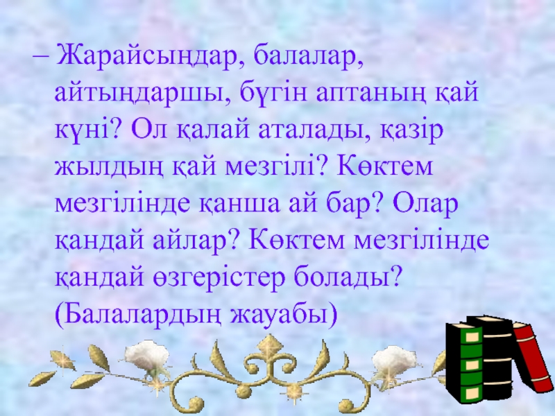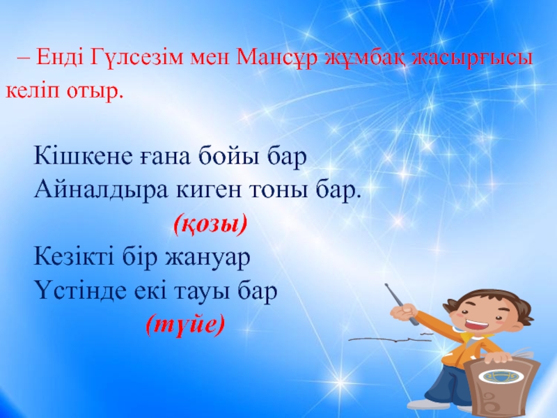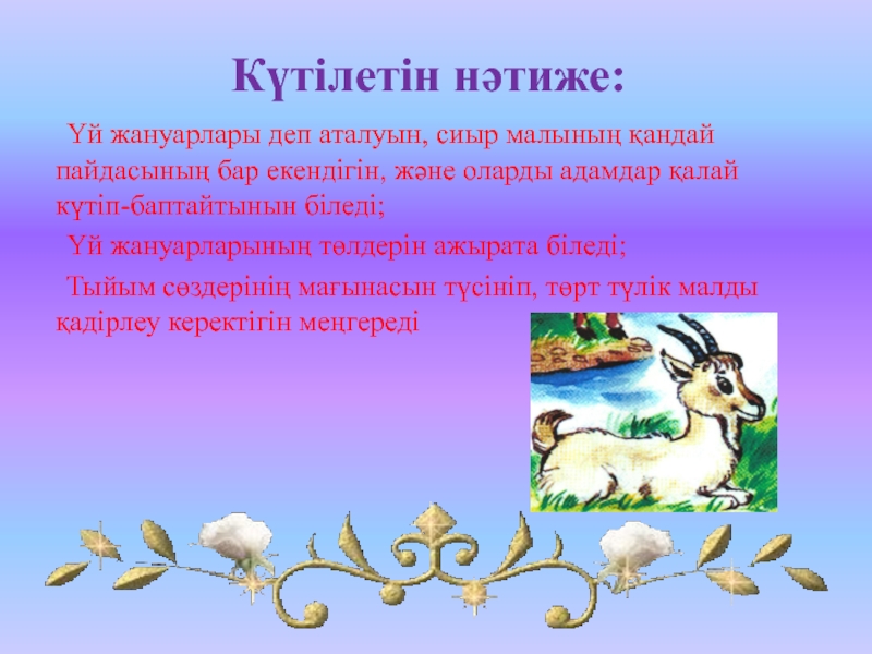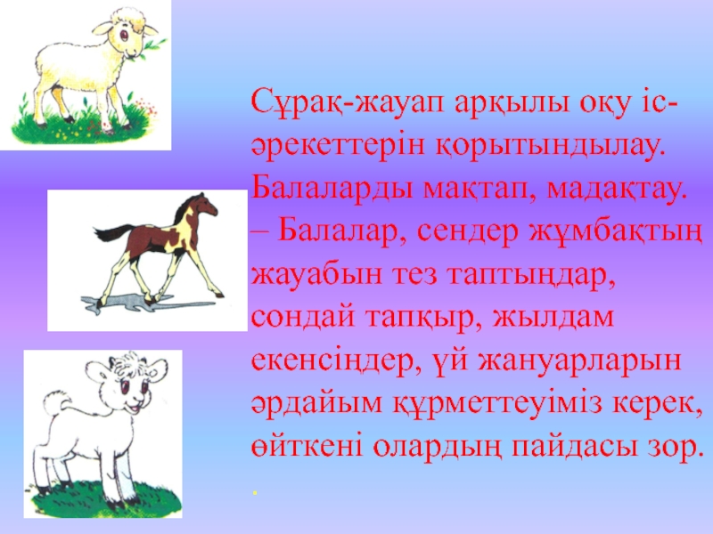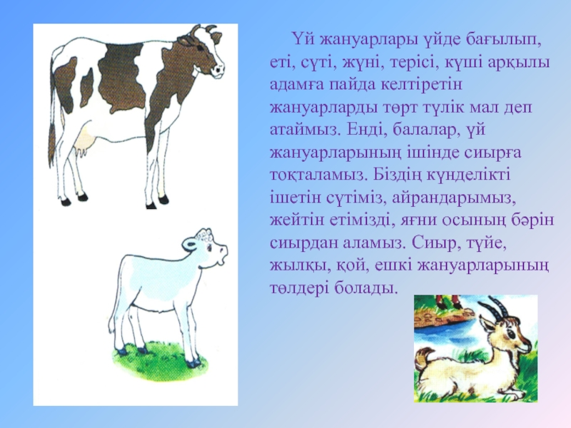 – Төрт түлік дегеніміз – түйе, жылқы, сиыр, қой ешкі.