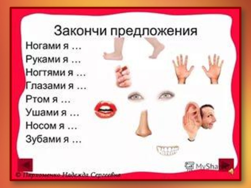 Что такое наше тело?Что оно умеет делать?Улыбаться и смеяться,прыгать, бегать, баловаться…Наши ушки звуки слышатВоздухом наш носик дышит.Ротик