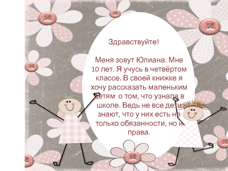 Это сайт презентаций, где можно хранить и обмениваться своими презентациями, докладами, проектами, шаблонами в формате PowerPoint с другими пользователями. Мы помогаем школьникам, студентам, учителям, преподавателям хранить и обмениваться учебными материалами.