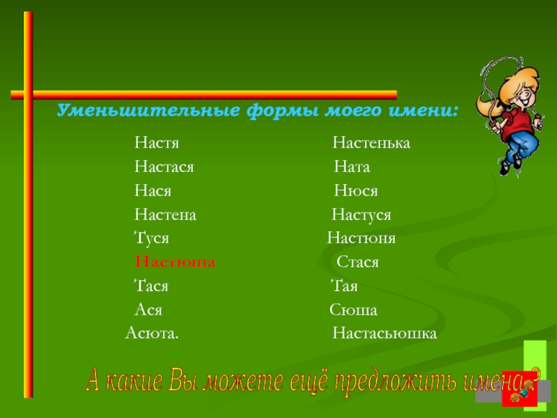 Я буду относиться к своему имени с уважением и стараться, чтобы им гордились окружающие меня люди!
