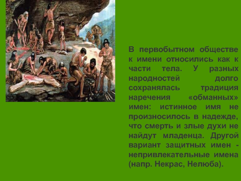 Слайд 7В первобытном обществе к имени относились как к части тела. У