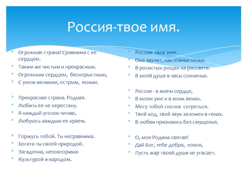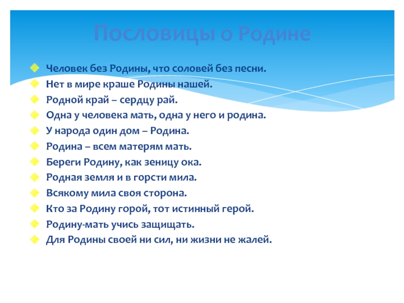 Хлеб, которым кормится человек, земля на которой человек живет, мать, которая дала жизнь… Без этого человеку жить невозможно. Среди самого заветного есть у человека Родина. Так много значит слово «Родина», что другим словом и не объяснишь. Одно назовешь, а каждый тебе еще что-нибудь добавит, так как каждый понимает Родину по-своему.
