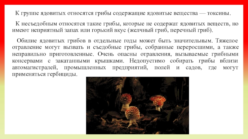 К семейству мухоморовых относится и крайне ядовитая бледная поганка. В Республике Коми этот гриб не обнаружен, он растет несколько южнее, в широколиственных лесах. К ядовитым относятся также ложно опёнки серно-желтый и кирпично-красный, а также свинушка тонкая.