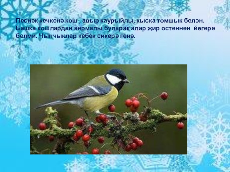 Слайд 22Песнәк кечкенә кош , авыр каурыйлы, кыска томшык белэн. Башка кошлардан