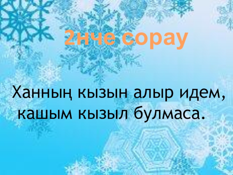 2нче сорауХанның кызын алыр идем, кашым кызыл булмаса.