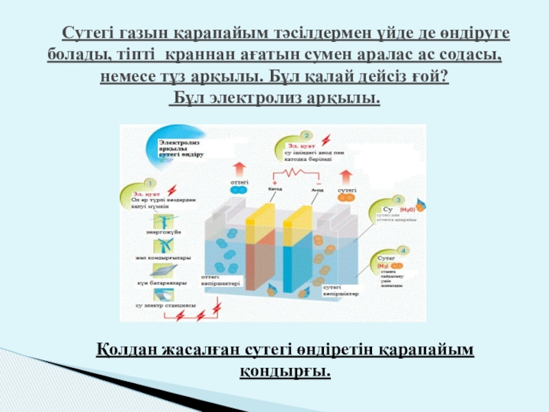 Қолдан жасалған сутегі өндіретін қарапайым қондырғы.