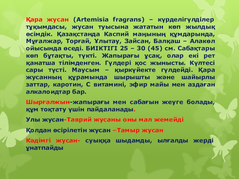 Слайд 7 Жусанның түрлері