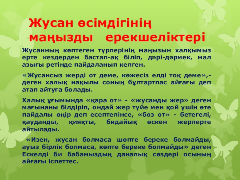 Слайд 10Жусан өсімдігінің маңызды ерекшеліктері