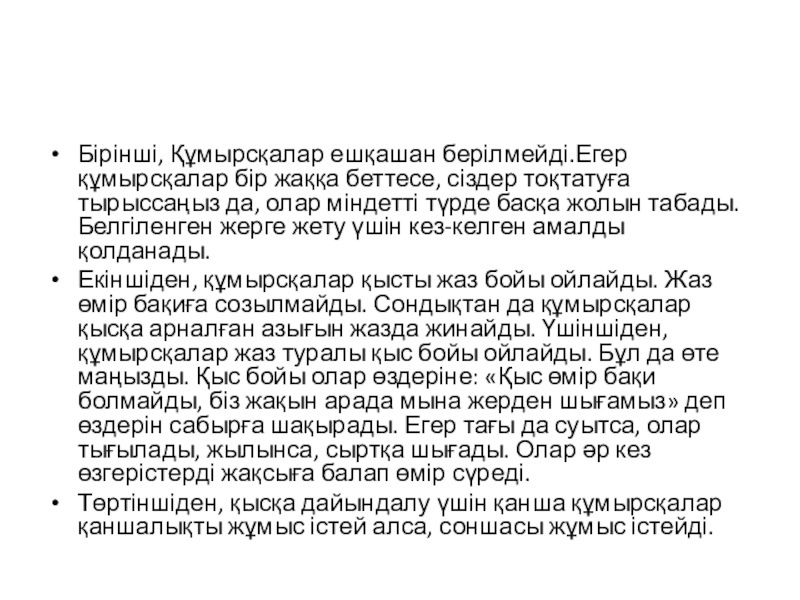 Слайд 11Бірінші, Құмырсқалар ешқашан берілмейді.Егер құмырсқалар бір жаққа беттесе, сіздер тоқтатуға тырыссаңыз