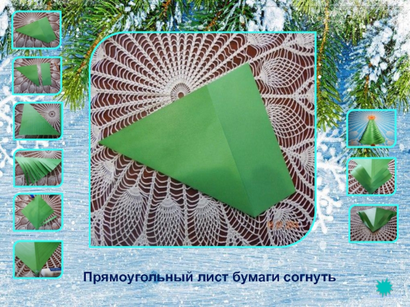 Слайд 4Прямоугольный лист бумаги согнуть