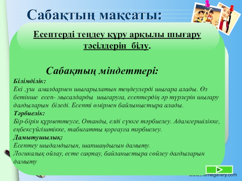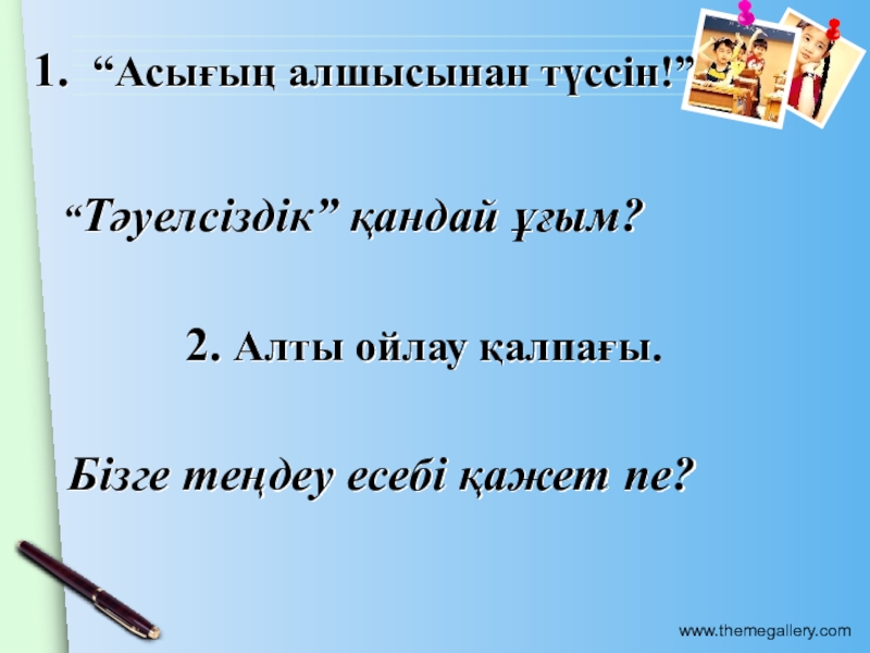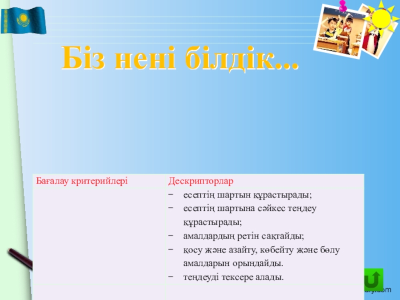 Кішкене бөбек (кішкентай саусақ) – менің білгім келеді ......