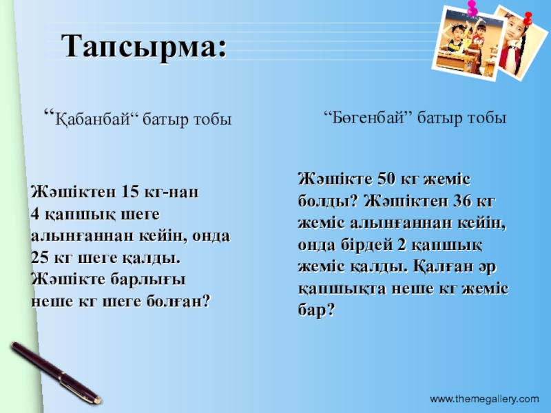 Жәшікте 50 кг жеміс болды? Жәшіктен 36 кг жеміс алынғаннан кейін, онда бірдей 2 қапшық жеміс қалды. Қалған әр қапшықта неше кг жеміс бар?
