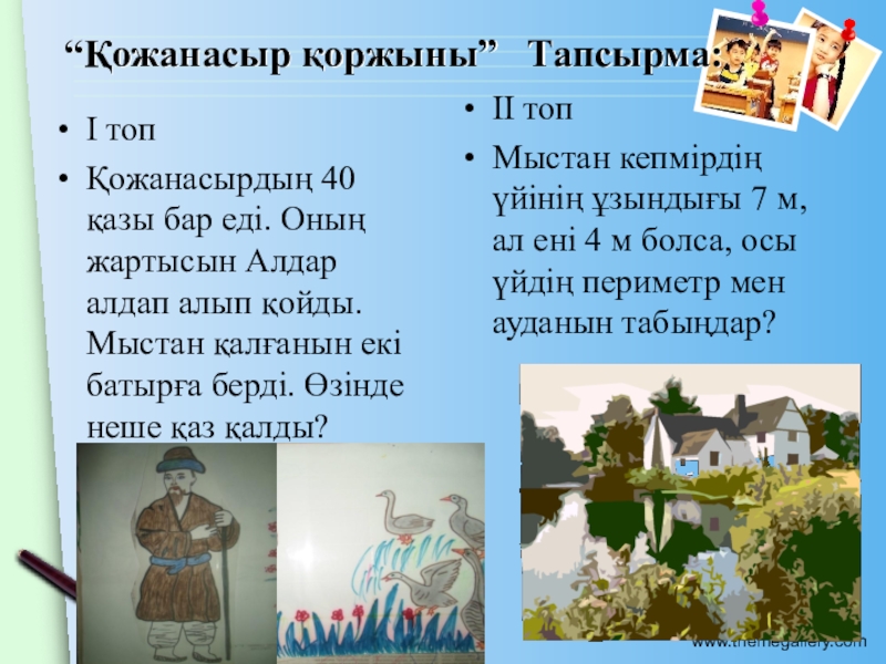 Мыстан кепмірдің үйінің ұзындығы 7 м, ал ені 4 м болса, осы үйдің периметр мен ауданын табыңдар?