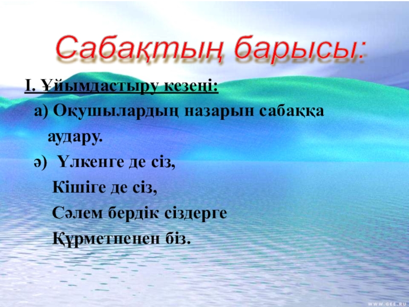 Сабақтың барысы: