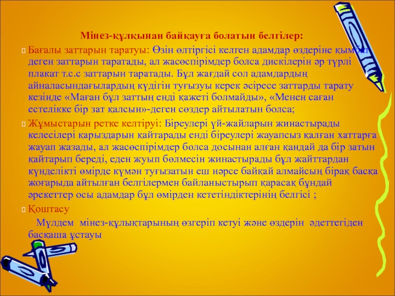 Мінез-құлқынан байқауға болатын белгілер: