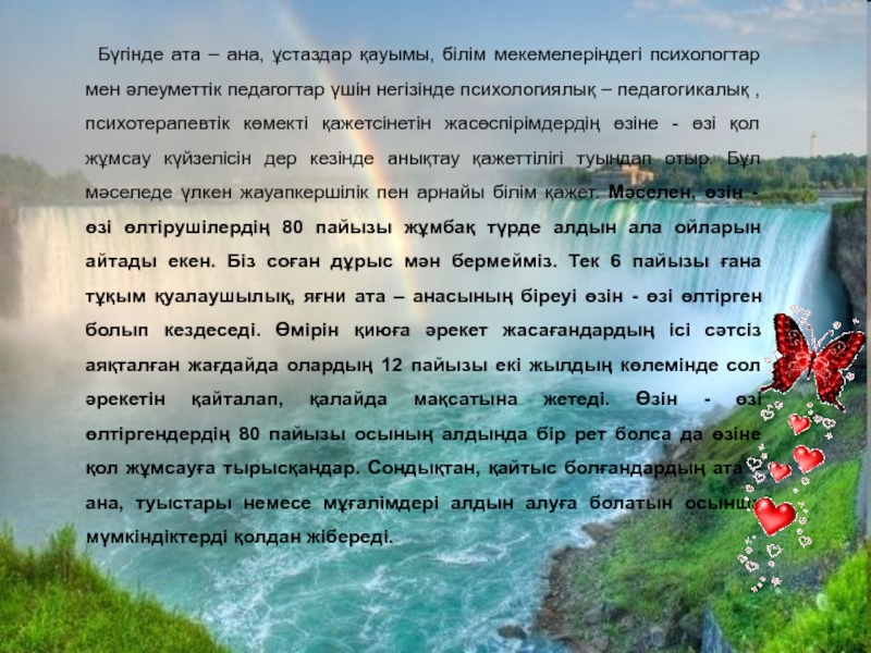 Өзін-өзі өлтіруге дайындалып жүргендердің 80% пайызы өз ниеттерін алдын-ала жүрген ортасына білдіреді екен.