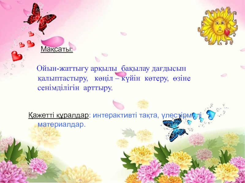 Қажетті құралдар: интерактивті тақта, үлестірмелі материалдар.