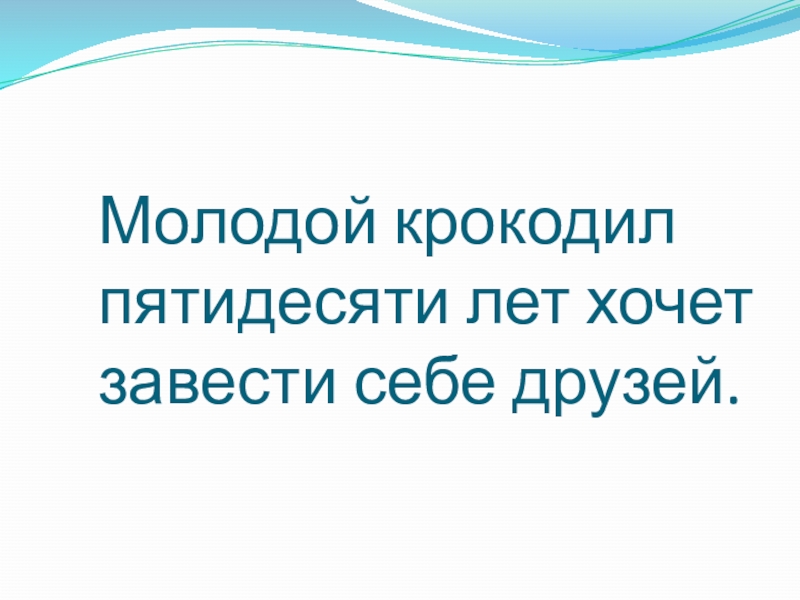 Слайд 17Молодой крокодил пятидесяти лет хочет завести себе друзей.