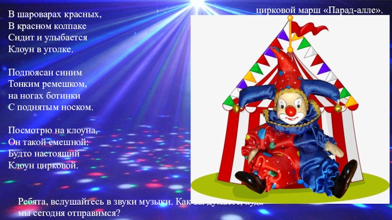Ребята, вслушайтесь в звуки музыки. Как вы думаете, куда