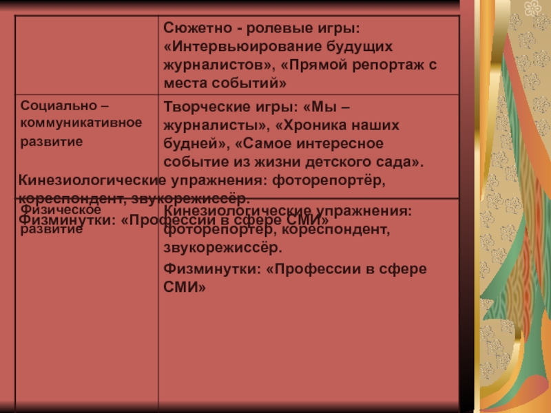 Слайд 15Кинезиологические упражнения: фоторепортёр, кореспондент, звукорежиссёр.