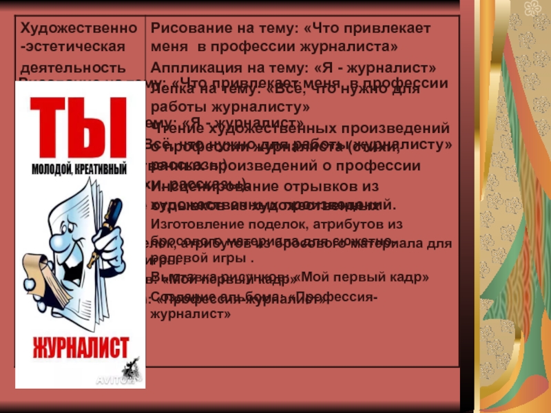 Слайд 14Рисование на тему: «Что привлекает меня в профессии журналиста»