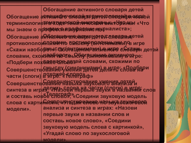 Слайд 17Обогащение активного словаря детей специфической терминологией в ходе тематической викторины: «Что