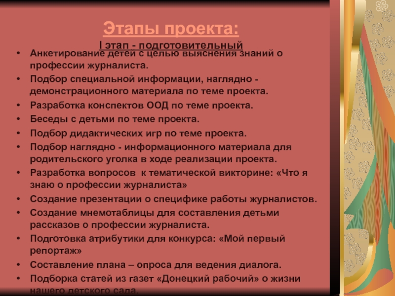 Слайд 12Этапы проекта: