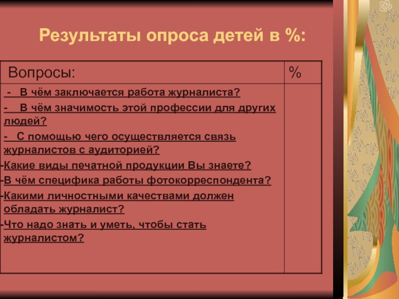 Результаты опроса детей по выявлению знаний о профессии журналиста.