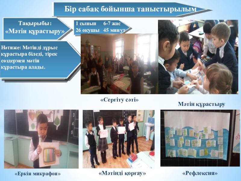 Нәтиже: Мәтінді дұрыс құрастыра біледі, тірек сөздермен мәтін құрастыра алады.