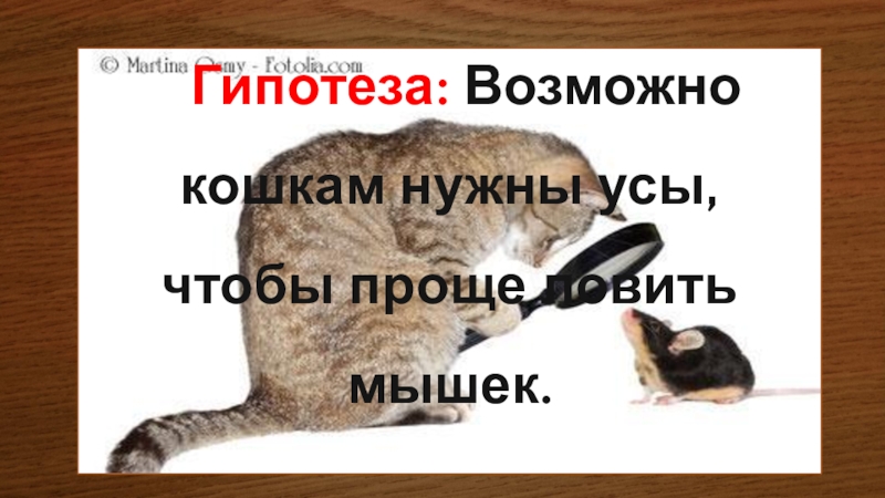 Слайд 2Гипотеза: Возможно кошкам нужны усы, чтобы проще ловить мышек.