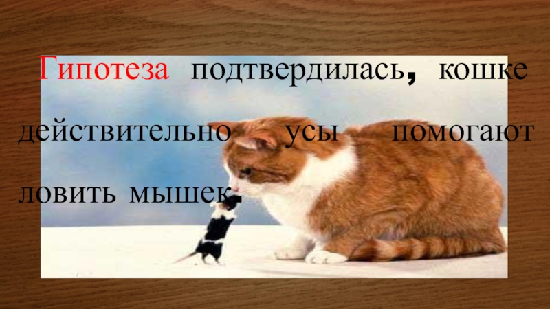 Слайд 7Гипотеза подтвердилась, кошке действительно усы помогают ловить мышек.