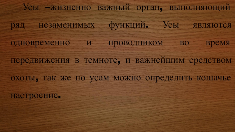 Слайд 5 Усы –жизненно важный орган, выполняющий ряд незаменимых функций. Усы являются одновременно