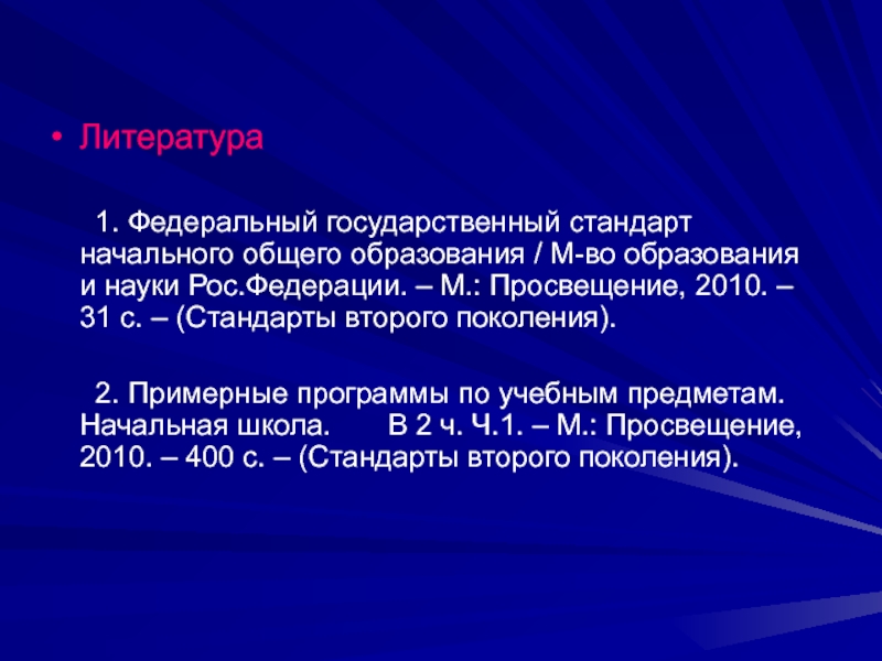 Литература   1. Федеральный государственный стандарт начального общего образования / М-во образования и науки Рос.Федерации. –