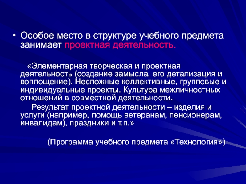 Слайд 8Особое место в структуре учебного предмета занимает проектная деятельность.