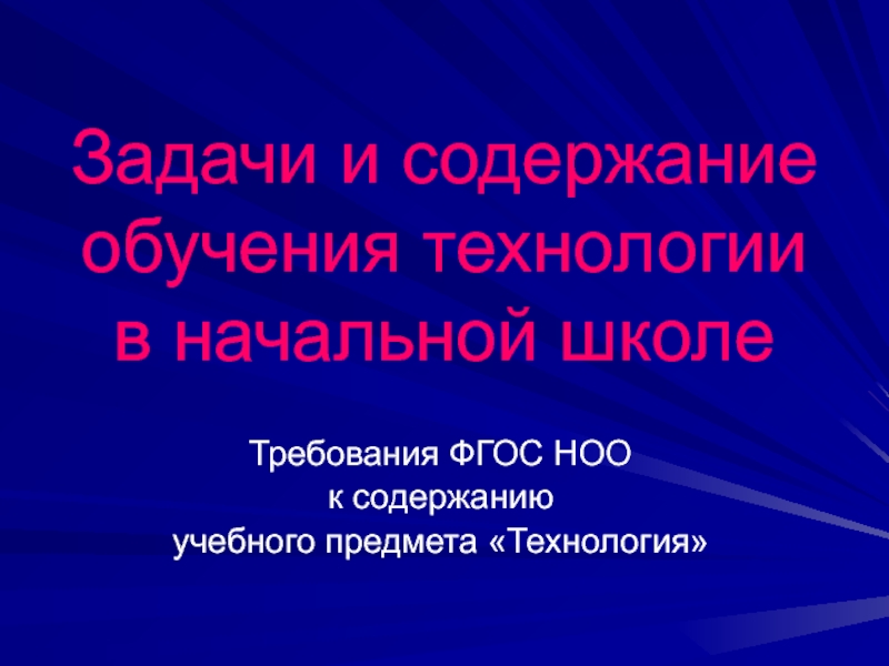 Презентация, доклад на тему Задачи и содержание учебного предмета Технология в начальной школе.