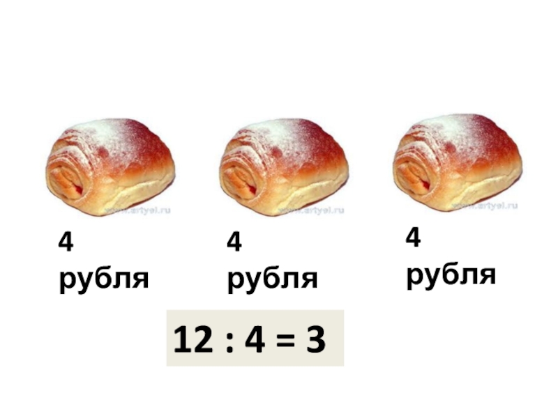 4 рубля4 рубля4 рубля12 : 4 = 3