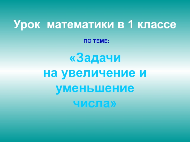 «Задачи на увеличение и уменьшениечисла»Урок математики в 1 классепо теме: