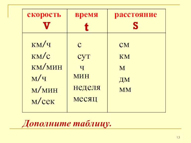 Дополните таблицу.
